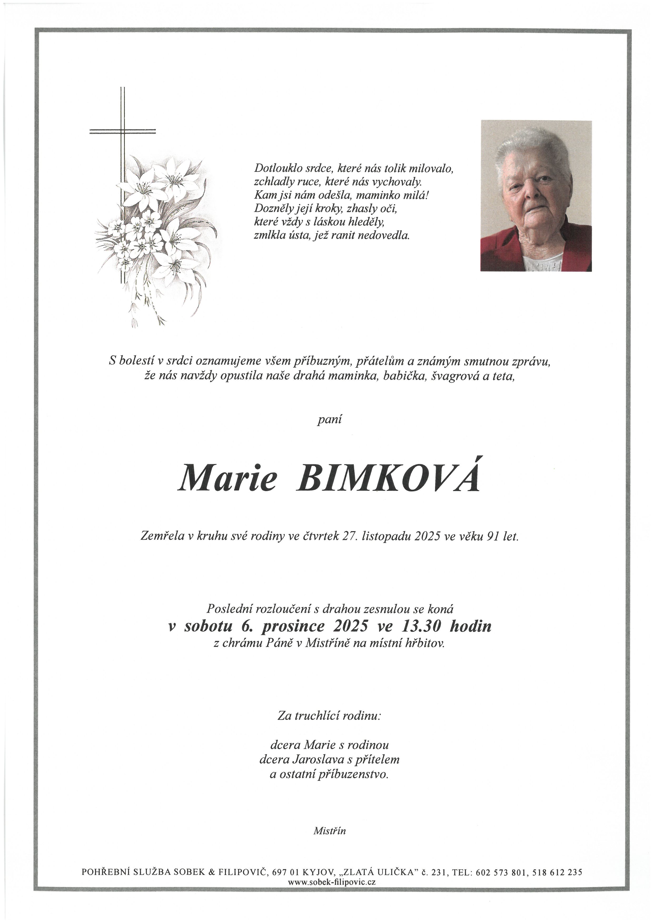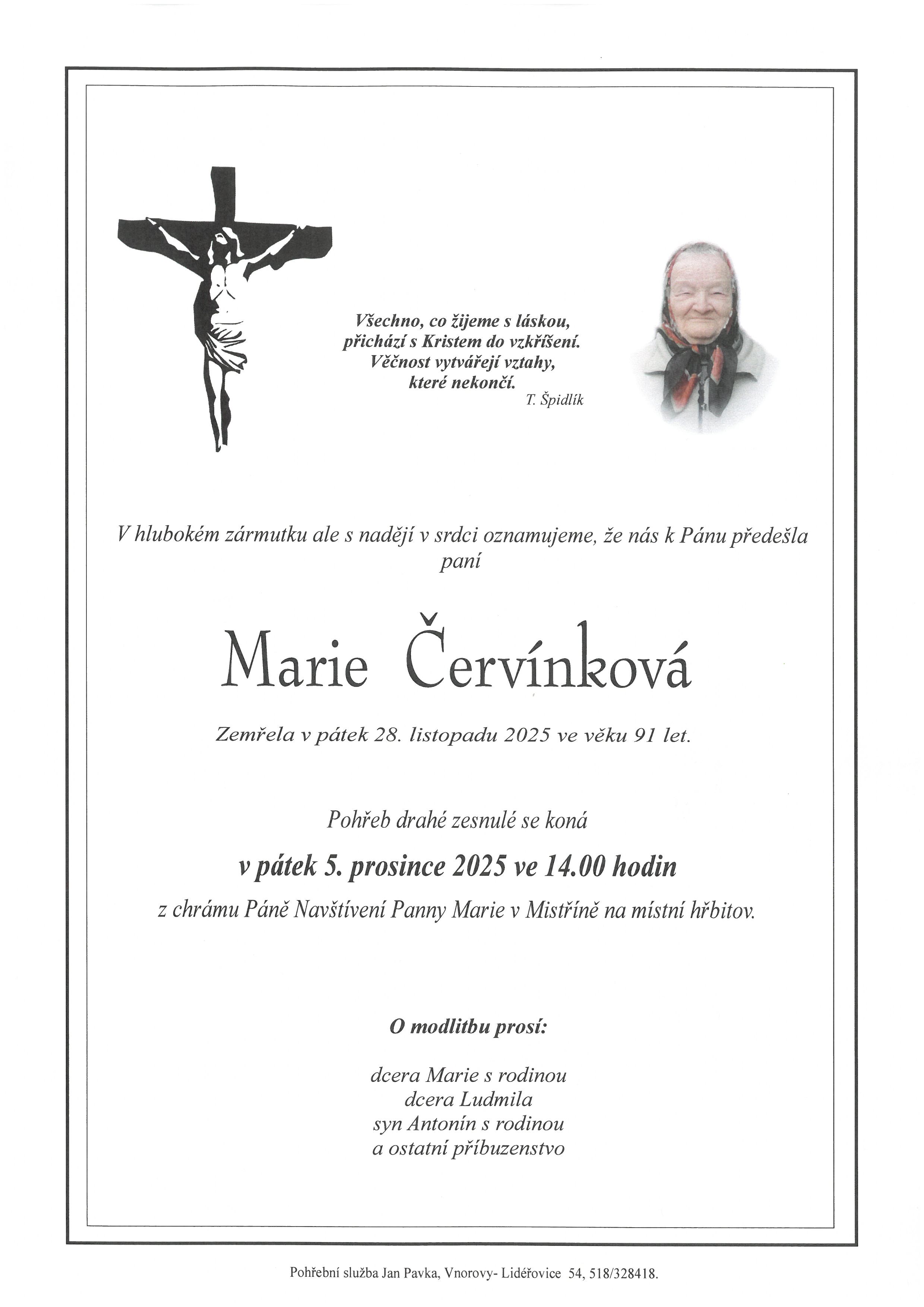 Marie Červínková 28.11.2025 (rodačka z Mistřína)