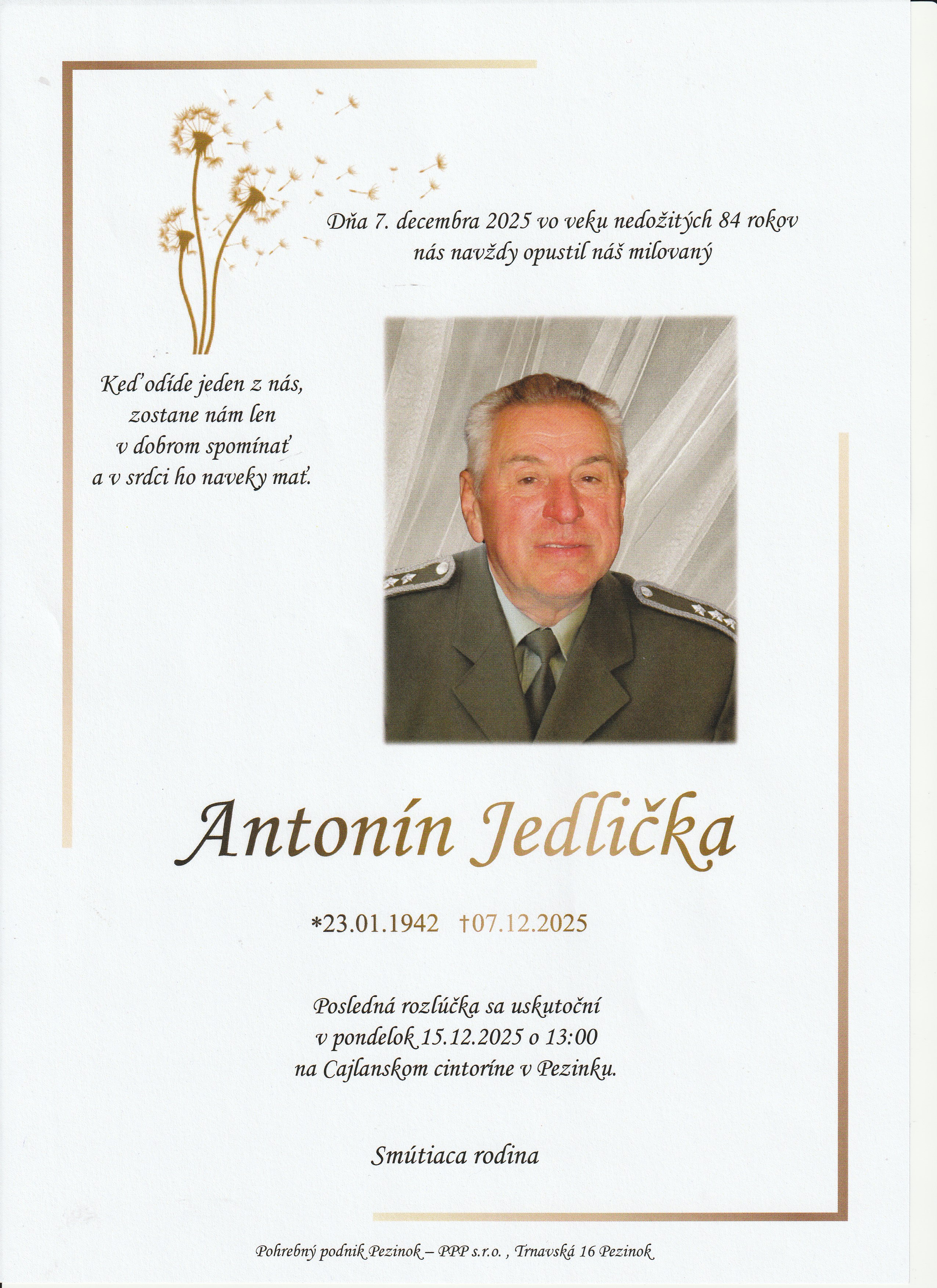 Antonín Jedlička 7. 12. 2025 (rodák z Mistřína)