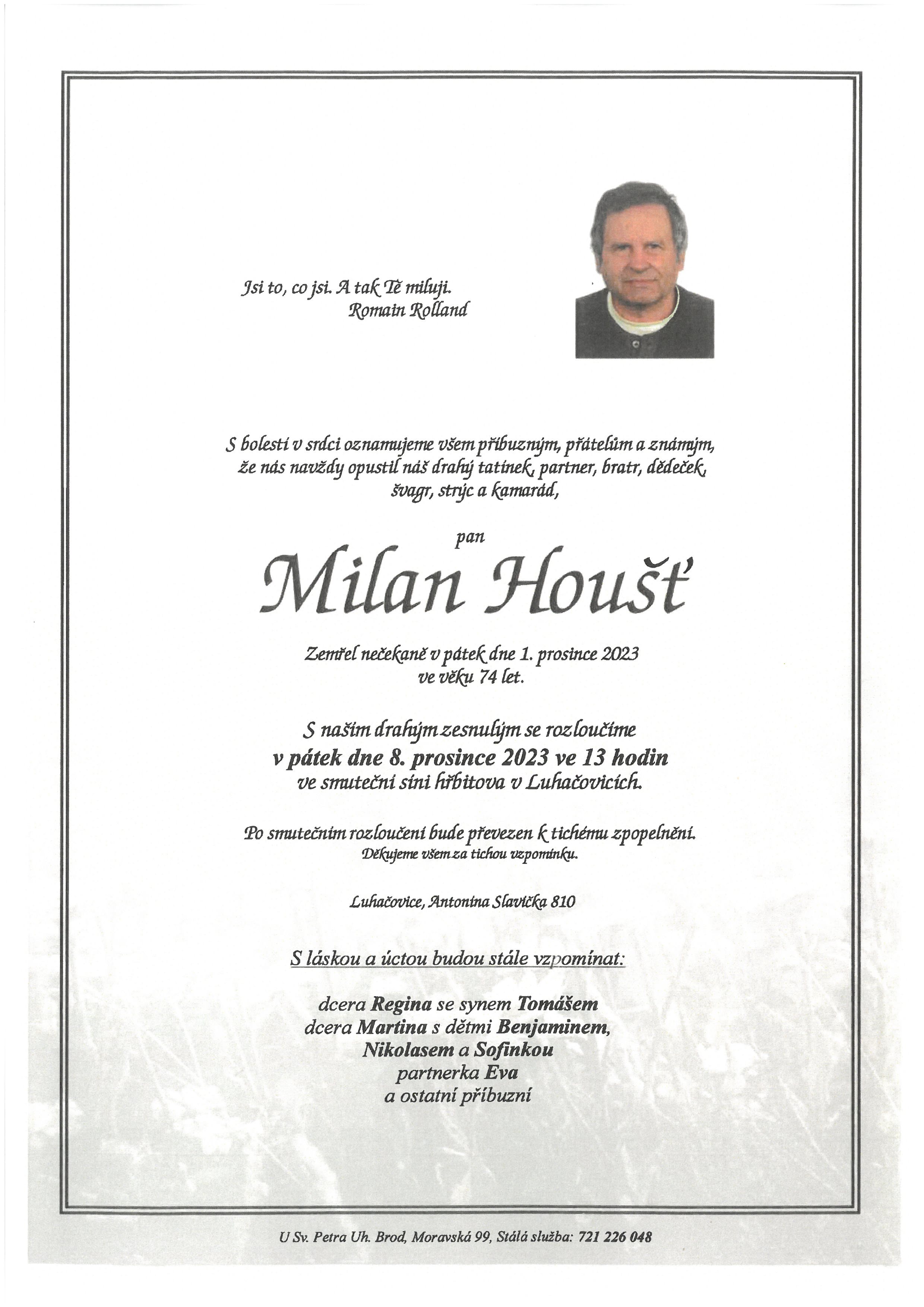 Vladimír Brhel 12. 9. 2025 (rodák z Mistřína)